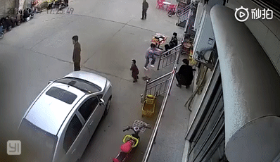 سۈرەتتىن كۆرۋىلىشقا بولىدۇكى، بىر كىچىك بالا يول بويىدا تۇرغان ئادەمنى بىرنى ئۇرغان؛ ئۇ ئادەم كەينىگە بۇرۇلۇپ، كىچىك بالىنى "ئەدەپلەپ قويغان".