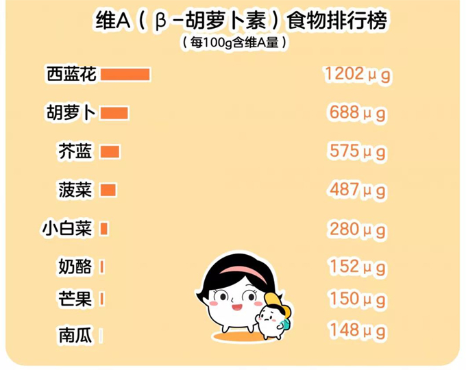 بۇلاردىن باشقا، قوغۇن، ئۈرۈك، يۇبەسەي، كەرەپشە، تاتلىق ياڭيۇ قاتارلىقلارنىڭمۇ ۋىيتامىنA تەركىبى نىسبەتەن يۇقىرى.
