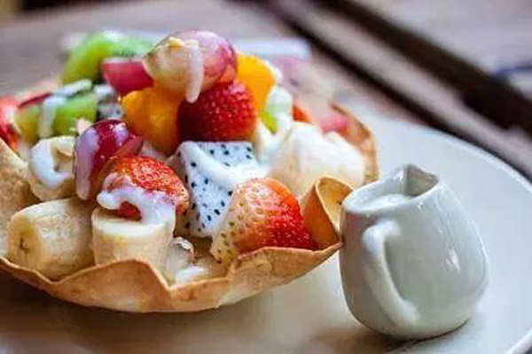 2. قېتىقنى توغرىغان مىۋىنىڭ ئۈستىگە تۆكۈپ تەكشى ئارىلاشتۇرغاندىن كىيىن، ئاز مىقداردا كونسىرۋا سۈتى قۇيۇپ تەمىنى تەڭشىسەكلا بولىدۇ.
