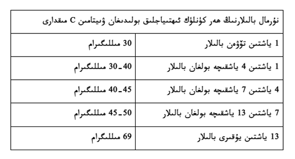 ۋىيتامىن C ۋە بالىلار ساغلاملىقى