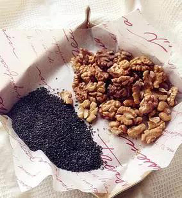 ياڭاق بىلەن كۈنجۈتنىڭ قانغا ئۇزۇقلۇق يەتكۈزۈپ ماغدۇر تۇلۇقلايدىغان ئۈنۈمى بار بولۇپ، ھامىلىنى تۇراقلاشتۇرۇش رولىنى ئۆتەيدۇ. ھامىلدارلىق مەزگىلدە مۇۋاپىق تۈردە ياڭاق ۋە كۈنجۈت ئىستىمال قىلىپ بەرگەندە، بۇلارنىڭ تەركىبىدىكى سېفالىن(脑磷脂)، لېتسىتىن(卵磷脂)، DHA قاتارلىقلارنىڭ ياغ تۈرىنى تۇلۇقلاش ئۈنۈمى بار بولۇپ، ياغ تۈرى بولسا ھامىيلىنىڭ مىڭە ھۈجەيرىلىرىنىڭ يىتىلىشىدىكى ئاساسلىق خام ئەشيا بولۇپ ھىسابلىنىدۇ؛ ئەگەر بۇ ياغ تۈرلىرى كەمچىل بولۇپ قالسا ھامىيلىنىڭ نىرۋا سېستىمىسىنىڭ يىتىلىشىگە تەسىر يىتىدۇ.