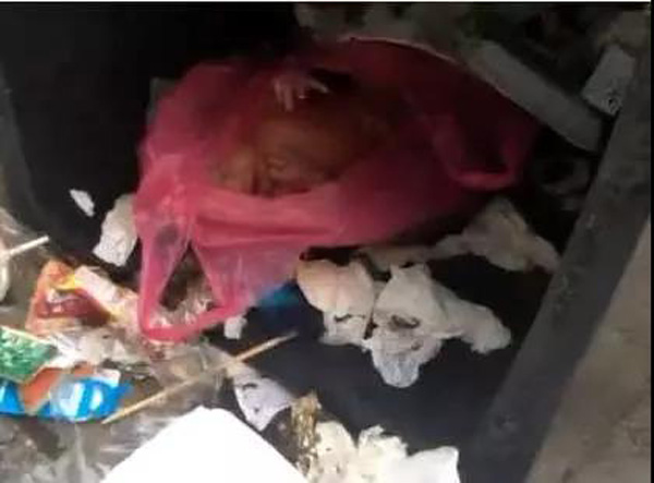 ئەرمەك ئىت ئەخلەت ساندۇقىدىن يىمەكلىك ئىزدەۋىتىپ، تاشلىۋىتىلگەن بۇ بوۋاقنى بايقىغان