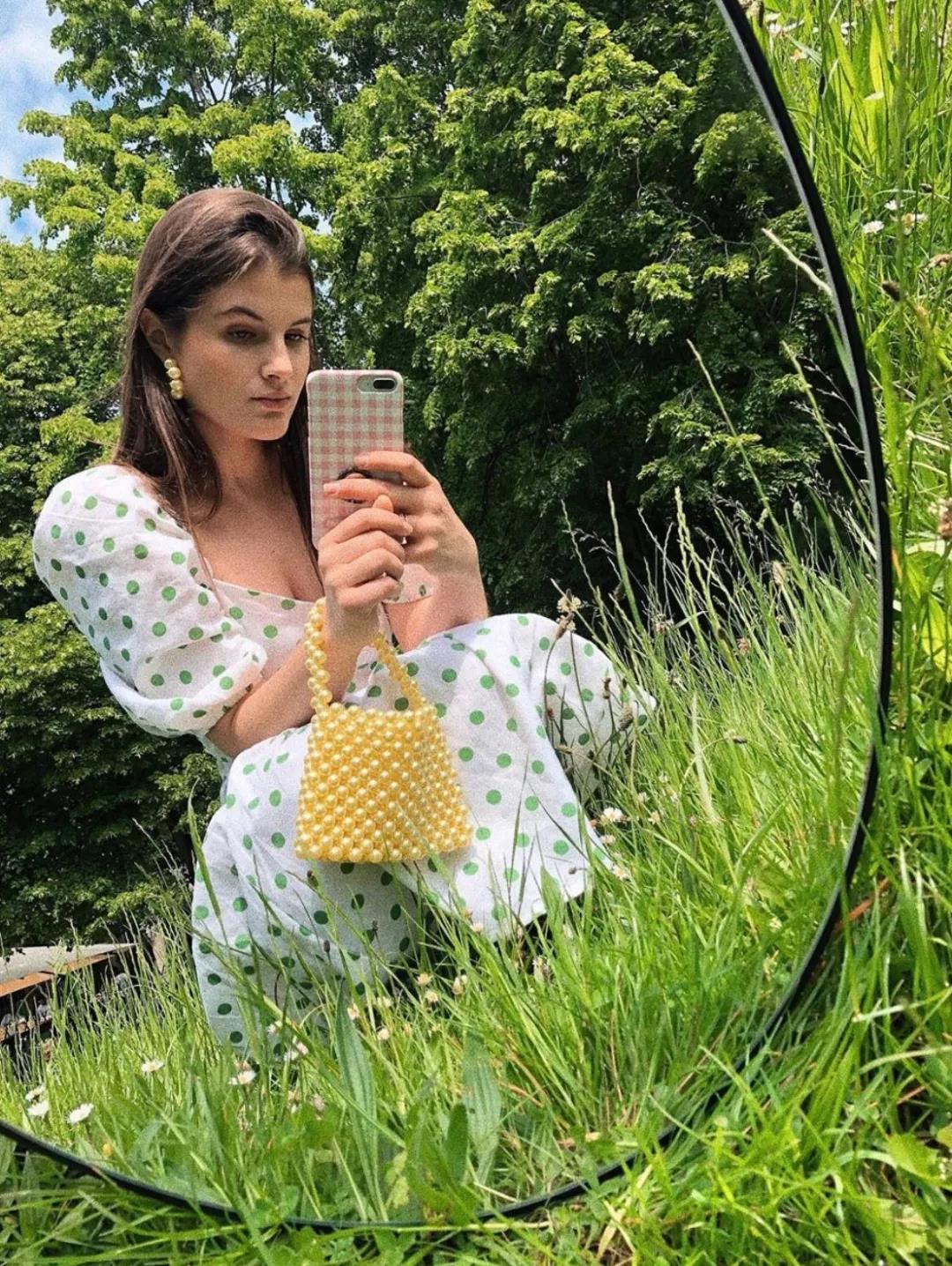 پۇرچاق يىشىلى رەڭلىك ئاسما كۆينەكنىڭ جەلپكارلىقى ئىنتايىن يۇقىرى! ئوخشاش رەڭدىكى كىچىك قول سومكىسى، سىزنى تېخىمۇ لاتاپەتلىك ھەم مودا كۆرسىتىدۇ.