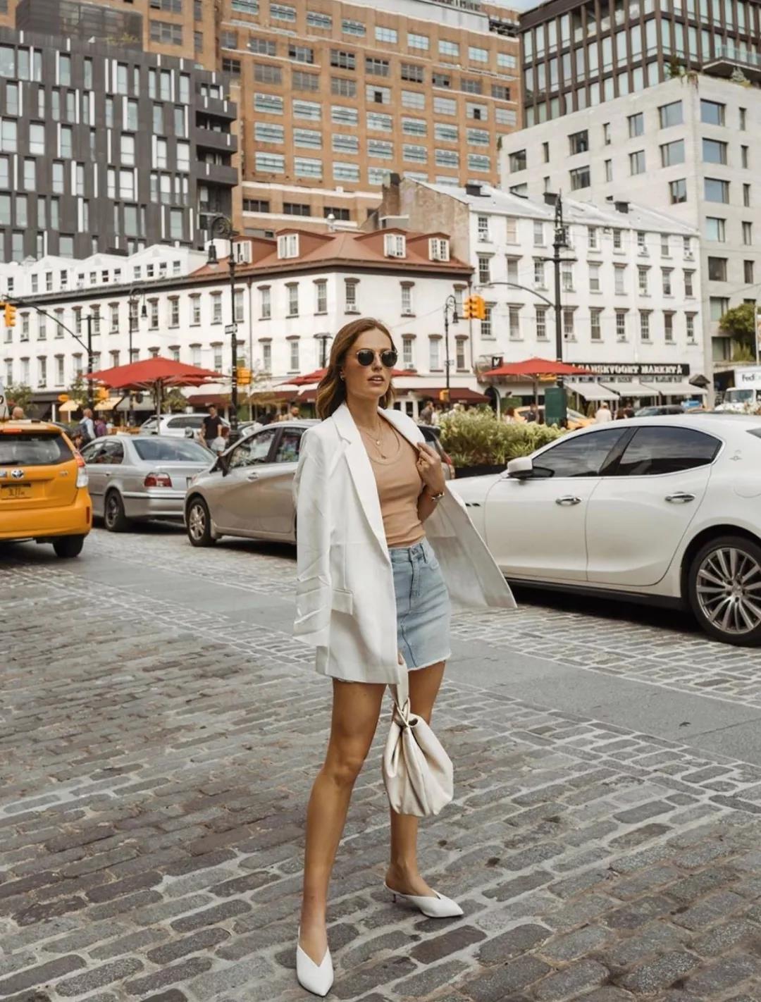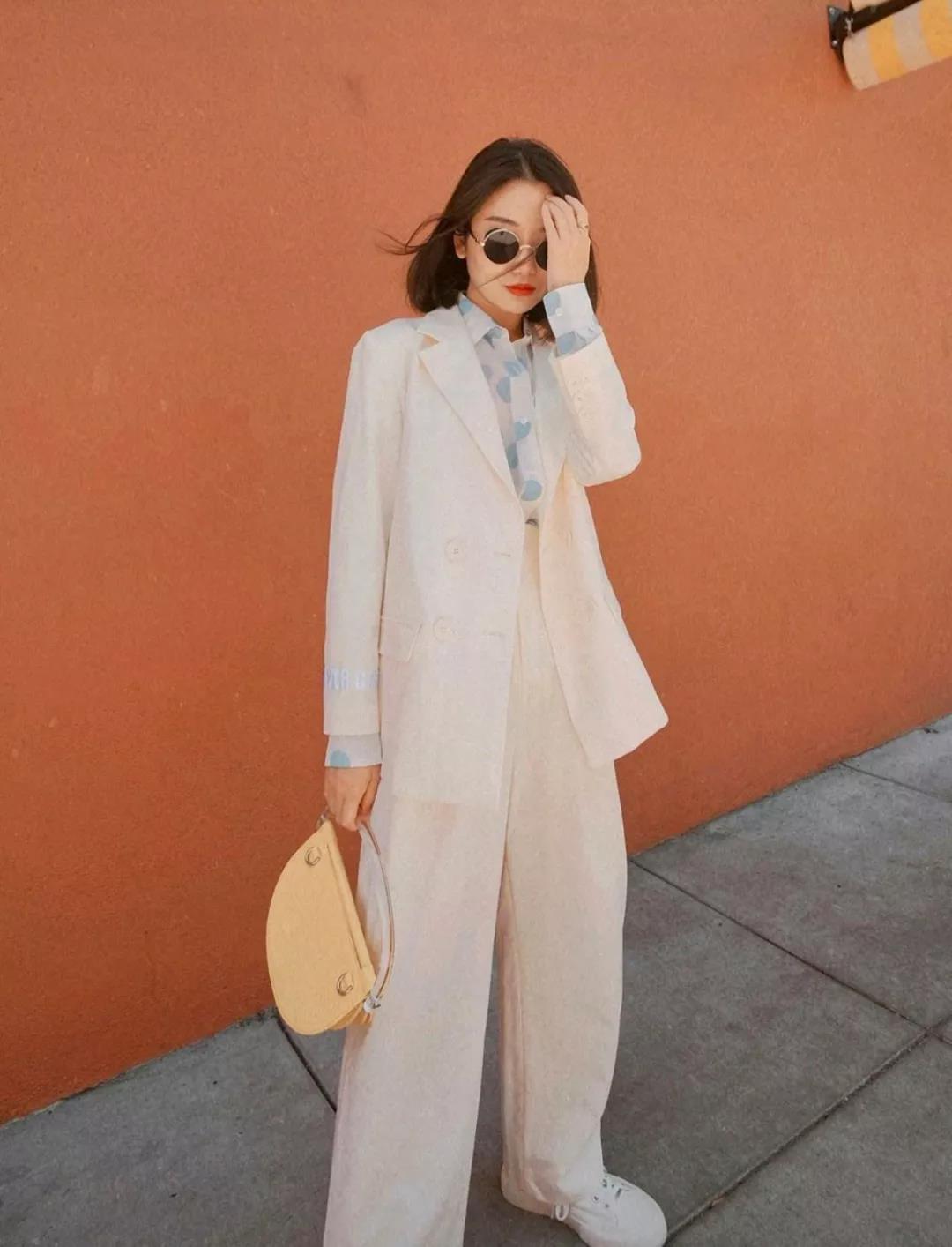 پۈتۈنلەي ئاق رەڭلىك كاستۇم يۈرۈشلىكى كىيىۋالسىڭىز، باشقىلارنىڭ دىققىتىنى يۇقىرى دەرىجىدە قوزغايسىز؛ بۇنىڭغا ئازراق سىرتقا ئاشكارىلىنىپ چىقىپ تۇرغان كۆينەك، ۋە سارغۇچ رەڭلىك سومكا قوشۇلسا، چوڭ سۈپەتلىك ئىچىدە مۇلايىملىقنى يوقاتمىغان كۆرىنىسىز.