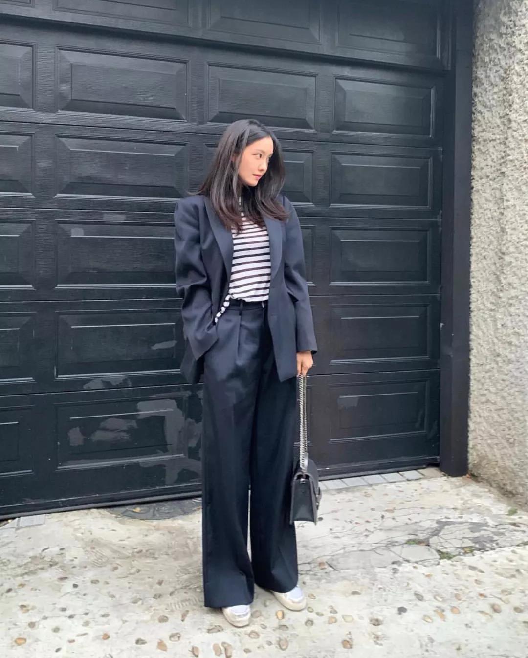 قارا رەڭلىك كاستۇم يۈرۈشلۈكى سىزنى ئازراق ئەركىشىگە ئوخشىتىپ قويىدۇ؛ بۇنداق ئەھۋالدا، مىتال باغلىق سومكا ئېسىپ، يەككە ماقاملىق تۇيغۇسىنى سۇسلاشتۇرسىڭىز بولىدۇ.