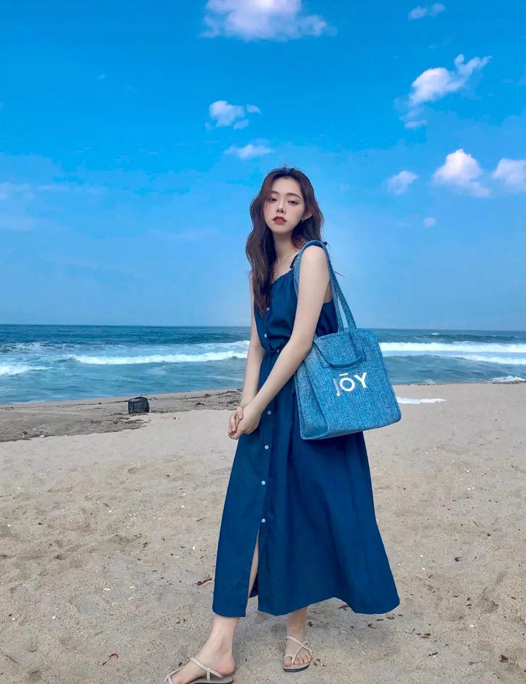 قېنىق كۆك رەڭلىك ئاسما كۆينەككە، سۇس كۆك رەڭلىك بىرزىنت سومكا ماسلاشتۇرسىڭىز، دېڭىز بويلىرىغا بېرىپ ساياھەت قىلىشقا ماس كىلىدۇ.