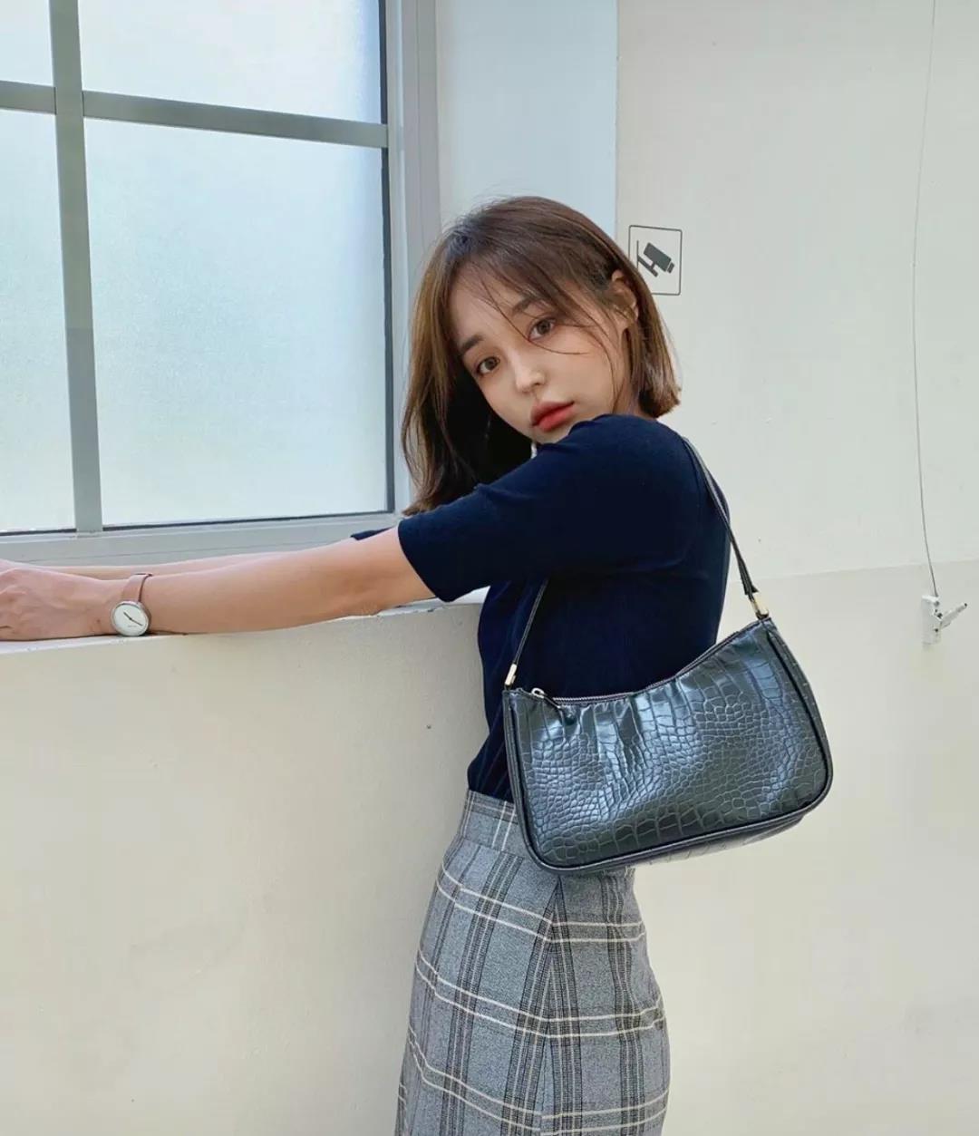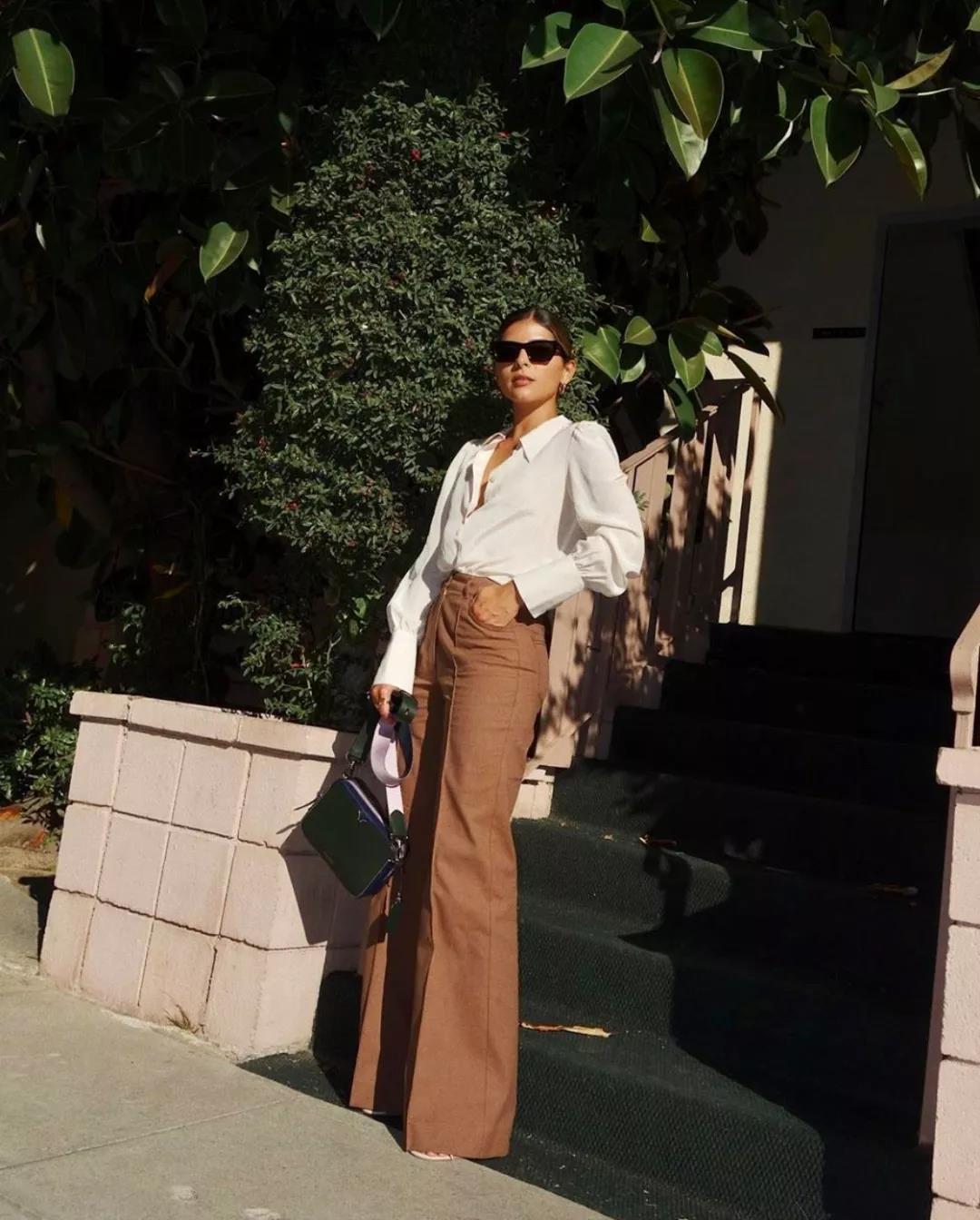 كۈلرەڭ كاستومغا سۈپەت تۇيغۇسى يۇقىرى بولغان ياغاچ رەڭلىك كىچىك ئاسما سومكا ماسلاشتۇرسىڭىز، سالاپىتىڭىز بىر بالداق يۇقىرى كۆتىرىلىدۇ.
