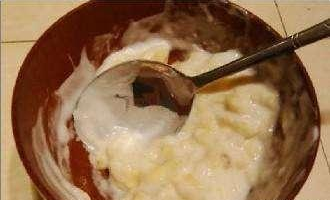 ئاۋۋال چىنىدىن بىرنى تەييارلاپ، يېڭى باناندىن بىرنى پوستىنى سويىۋىتىپ توغراپ چىنىگە سالىمىز، كەينىدىن قۇشۇقتا ئىزىپ لاي ھالىتىگە ئەكىلىمىز؛ كەينىدىن، بىر قوشۇق ئەتراپىدا كالا سۈتى قوشۇپ ئارىلاشتۇرىمىز. بۇنىڭدا ئەڭ ياخشىسى ساپ كالا سۈتى ئىشلىتىش كېرەك، ساپ كالا سۈتى تېرىنى ئاقارتىپ داغ سەپكۈنلەرنى سۇسلاشتۇرۇشقا تېخىمۇ پايدىلىق بولىدۇ. قوشۇق بىلەن چىنىدىكى ماتېرىياللارنى توختىماي قوچۇپ ئارىلاشتۇرۇپ، ئىككىسىنى پۈتۈنلەي بىرلەشتۈرگەندىن كېيىن، چاپلاق ئورنىدا يۈزىمىزگە سۇۋاپ بەرسەك بولىدۇ.