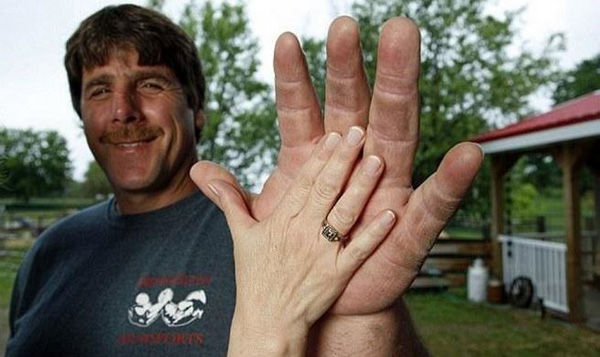 ئادەتتىكى كىشىلەرنىڭ ئالقىنىغا سېلىشتۇرغاندا، جېف.دابىنىڭ ئالقانلىرى ئېيىق تاپىنىغا ئوخشايدۇ.