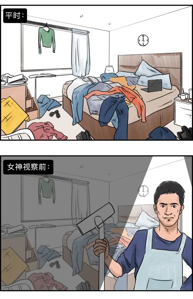 ئادەتتە ئۆيىنى ئېغىلدەك تۇتىدۇ؛ ئەمما ياخشى كۆرىدىغان قىز بالا تەكشۈرۈشكە كەلگەندە، دەرھال پاكىزىلاپ تەييارلايدۇ؛ قىز دوستى تەكشۈرۈپ كىتىپ بولغاندىن كىيىن، يەنە ئەسلىدىكى ئېغىل ھالىتىگە قايتىدۇ.