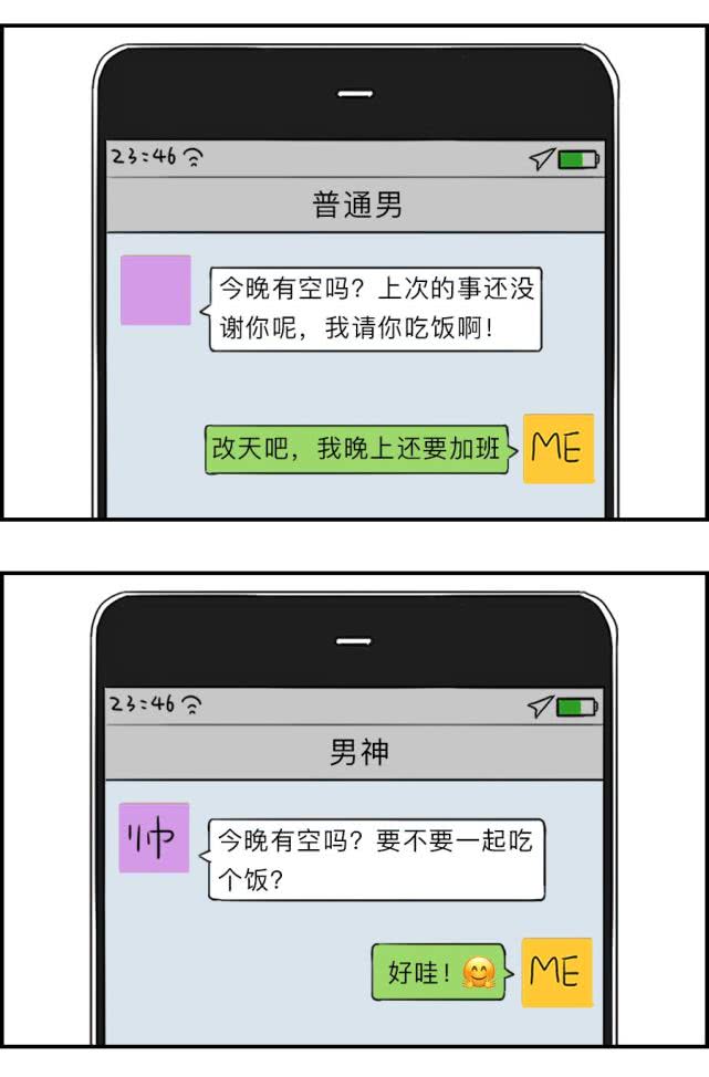 ئادەتتىكى خىزمەتدېشى تاماققا تەكلىپ قىلسا، بىكار بولسىمۇ ۋاقتىم يوق دەيدۇ؛ ئەمما ئۆزى زوقلىنىدىغان ئەر كىشىدىن بىرسى تاماققا تەكلىپ قىلسا، بوش ۋاقتى بولمىسىمۇ ۋاقىت چىقىرىپ ماقۇل بولىدۇ.