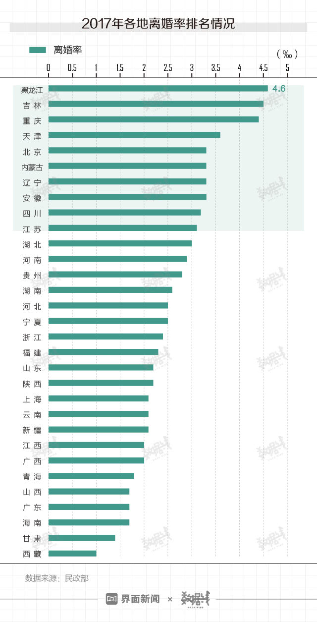 خېيلۇڭجىياڭ ئۆلكىسىدىكى ئاجراشقانلارنىڭ سانى ئەڭ كۆپ، شاڭخەي شەھىرىدىكى تويلاشقانلارنىڭ سانى ئەڭ ئاز