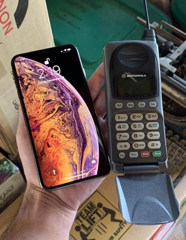 2018-يىلىدىكى يانفون ۋە 1998-يىلىدىكى يانفون.