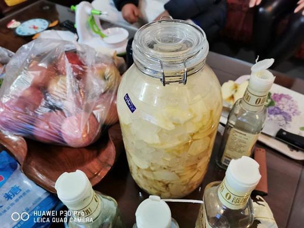 بەش جىڭ ئالما سېتىۋىلىپ، يۇيۇپ قۇرىغاندىن كېيىن ياپراقچە قىلىپ توغرىۋالىمىز.