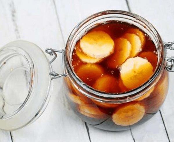 كەينىدى، قاچا ئىچىگە ئىستېمالغا ئىشلىتىدىغان 9گىرادوسلۇق ئاق ئاچچىقسۇ قوشۇپ، قاچا ئېغىزىغا 5سانتىمىتىر قالغۇچە توشقۇزىمىز ھەمدە ئېغىزىنى ھىم ئىتىپ تەسكەي بولغان نورمال تىمپىراتۇرىلىق ئورۇندا ئۈچ ئاي قويۇپ قويىمىز.