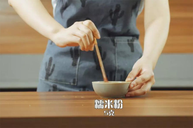 نومى گۈرۈچى تالقىنىغا ئازراق سۇ قوشۇپ ئارىلاشتۇرغاندىن كىيىن، ئىشلىتىش ئۈچۈن ئېلىپ قويىمىز.