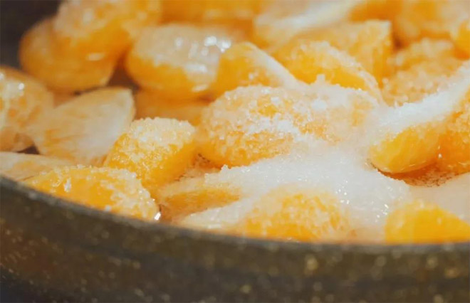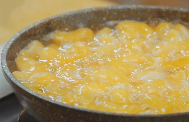 ئاپلىسىننى بىرتال-بىرتالدىن ئاجرىتىپ، يۈزىدىكى ئاق يىپچىلارنى ۋە ئۇرۇغىنى ئېلىۋىتىمىز؛ بولمىغاندا، قايناتقان شىكەر سۈيىگە چۈچۈمەل تەم كىرىۋالىدۇ.