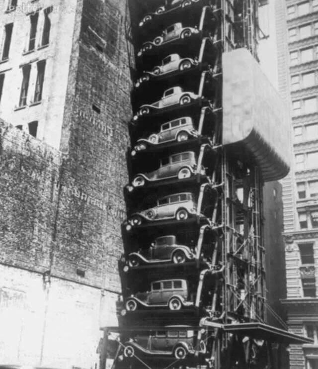 20-ئەسىرنىڭ 30-يىللىرىدىلا، نىيۇرۇكتا تىك شەكىللىك ماشىنا توختىتىش مەيدانى پەيدا بولغان بولۇپ، يىتەكچى ئىدىيىسى ھازىرقى ستىرىئولۇق ماشىنا توختىتىش مەيدانلىرىدىن قېلىشمايدۇ.