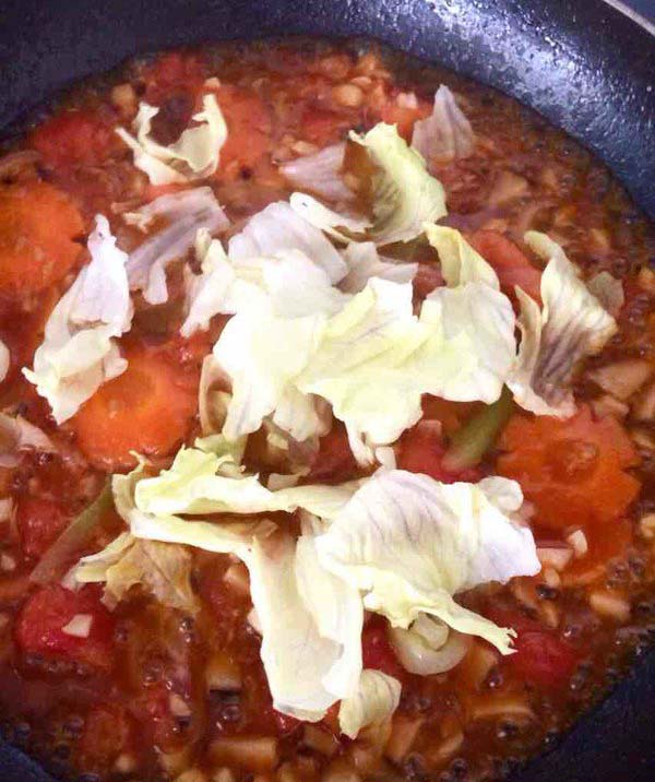 شوخلىنى سېلىپ، ئازراق سۇ قۇيۇپ قاينىتىپ قىيام قىلىمىز؛ ئەگەر ئاچچىقراق يىيىشنى ياخشى كۆرسىڭىز، ئازراق مۇچ تالقىنى ياكى مۇچ قىيامى قوشۇۋەتسىڭىز بولىدۇ.