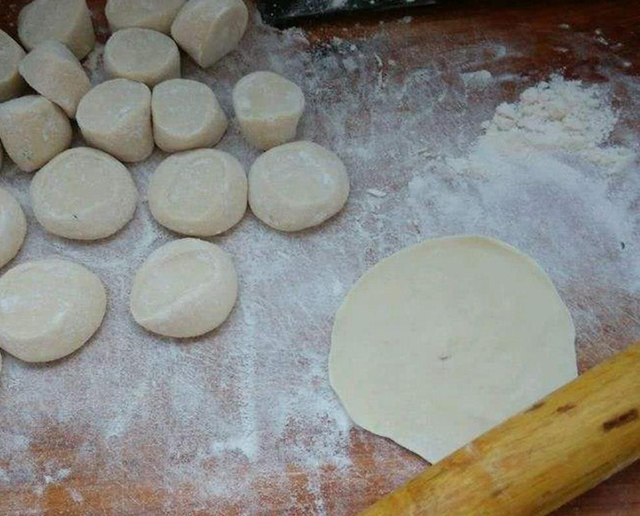 ئالتىنچى قەدەمدە، داسقا مۇۋاپىق ئۇن ئېلىپ خېمىر يۇغۇرىمىز.