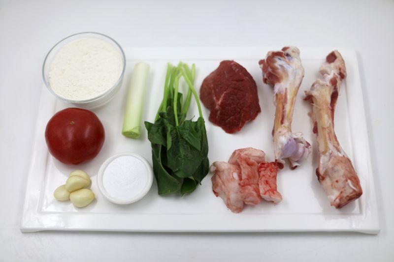 خام ماتىريالى: ئۇن، گۆش، سوڭەك، دۈمبە ياغ، سۇڭپىياز، سامساق، شوخلا، پالەك، شولتا،(پىڭخۇي)