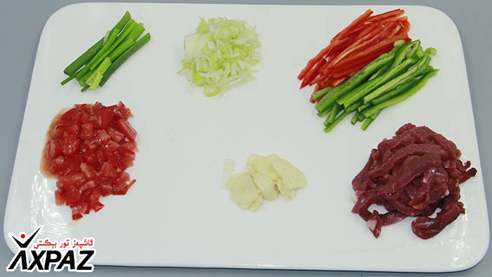 خام ماتېرىيالى :ئىتالىيەچۆپى،قوي گۆشى،قىزىلمۇچ،كۆكمۇچ،پەمىدۇر،غولپىياز،سامساق،كۆك پىياز