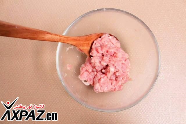2 . گۆشنىمۇ ئۇششاق قىلىپ توغراپ توغراپ قاچىغا ئالىمىز ھەم ئۈستىگە بىر قۇشۇق كىراخمالنى سالىمىز .