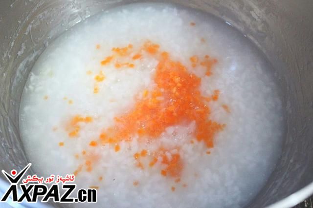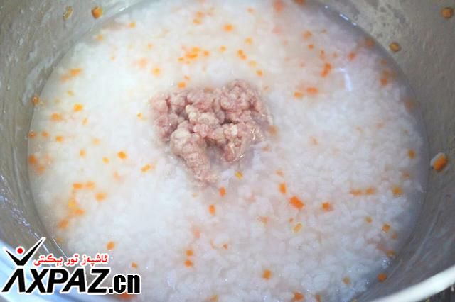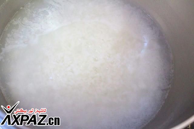 4 . قازانغا مۇۋاپىق مىقداردا سۇ قۇيۇپ ، گۈرۈچنى سېلىپ ، يېرىم سائەت ئەتراپىدا قاينىتىمىز .