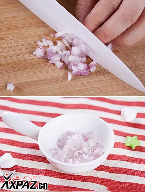 5 . پىيازنى پاكىز يۇيۇپ ، ئۇششاق توغراپ تەييار قىلىۋالىمىز .