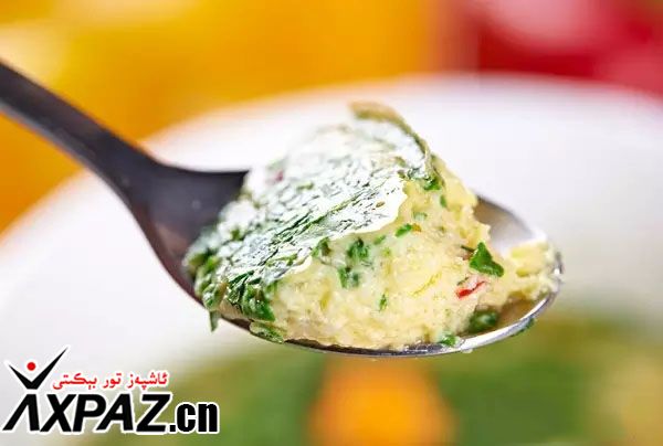 8 . تەييار قىلىۋالغان تۇخۇمنىڭ ئۈستىگە ، تەييار قىلىۋالغان قىزىل مۇچ بىلەن پالەك ، مايلىق يېسىۋېلەكنى سالىمىز .
