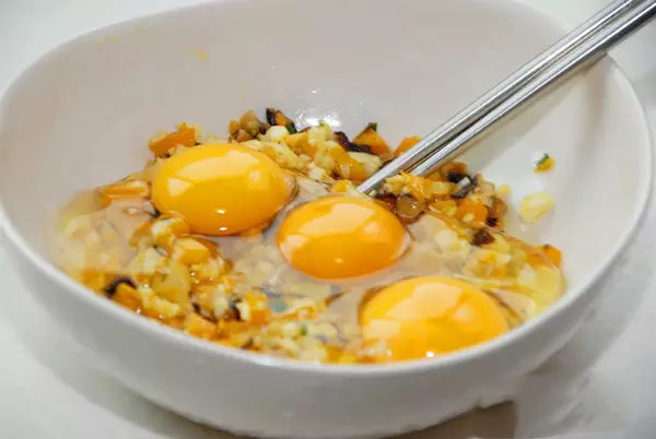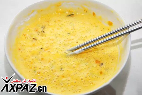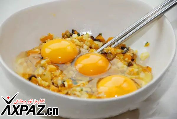 4 . تەييارلىۋالغان 3 تال تۇخۇمنى ئۈستىگە چاقىمىز .