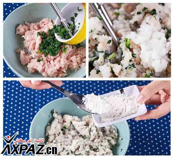كېرەكلىك ماتىرياللار : مايلىق يېسېۋېلەك 3 قۇلاق، توخۇ گۆشى 180 گىرام ، پىشقان گۈرۈچ 60 گىرام ، ئۇن 1 قۇشۇق ، كىراخمال ئاز مىقداردا ، سۇ مۇۋاپىق مىقداردا .