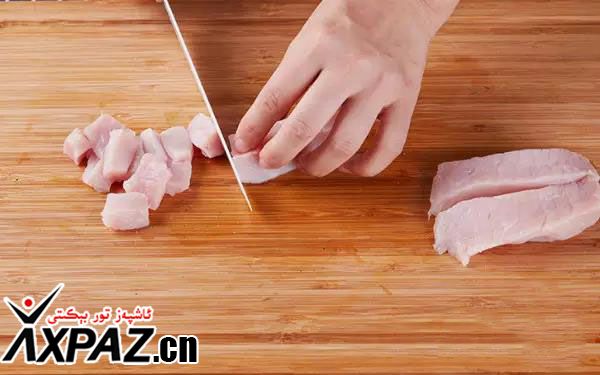 6 . گۆشنىمۇ پاكىز يۇيۇپ ، توغراپ تەييار قىلىۋالىمىز .