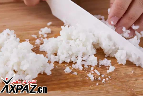 2 . پىشقان گۈرۈچنى ئۇششاق قىلىپ توغراپ تەييار قىلىۋالىمىز .