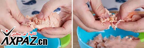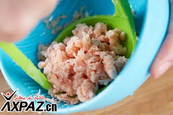 7. ئەمدى قۇلىمىزنى پاكىز يۇيۇپ ، دۈملەپ پىشۇرۇپ بولغان بېلىقنى ئۇششاق قىلىپ پارچىلىۋالىمىز .