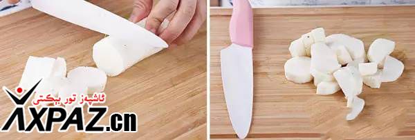 2. سەۋزىنىڭ پوستىنى پاكىز ئاقلىۋېتىپ ، مۇۋاپىق چۇڭلۇقتا تۇغراپ ، قازانغا سۇ قۇيۇپ پىشۇرىمىز .