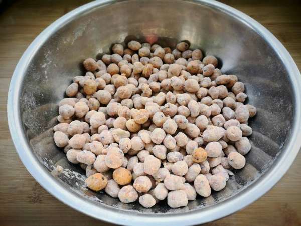 ئۇن خاسىڭغا قايتا يېپىشماي ئارتۇق بولۇپ قالغاندا ئۇن قوشۇشنى توختىتىمىز؛ ئەگەر خاسىڭ بىر-بىرىگە چاپلىشىپ قالغان بولسا، قولىمىزدا ئاجرىتىپ چوقۇم ئايرىم-ئايرىم دانىچە ھالىتىگە ئەكىلىمىز. (چوڭراق داسقا تەييارلىغان خاسىڭنى تۆكۈپ، داسنى ئوڭ-سولغا چايقاپ، ئۇننى تەكشى يېپىشتۇرساق بولىدۇ.)