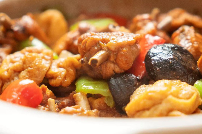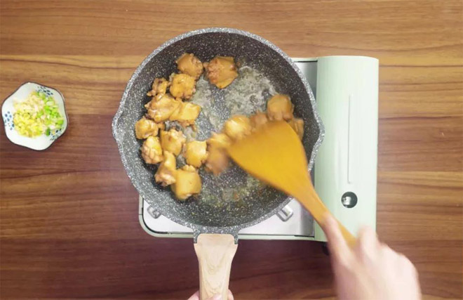 كەينىگە ئۇلاپلا، موگونى چىلاپ قويغان سۇدىن، قازانغا توخۇ قانىتىنى پۈتۈنلەي يۆگىگەن ھالدا قۇيۇپ، ئۈستىگە ئۈچ قوشۇق خۇڭشاۋ جىياڭيۇسى، كىچىكرەك بىر قوشۇق تۇز، كىچىكرەك بىر قوشۇق شىكەر سېلىپ تەم كىرگۈزىمىز.