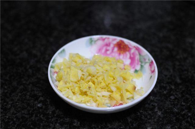 سامساق ۋە زەنجىۋىلنى ئۇششاق توغراپ تەييارلايمىز.