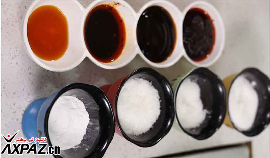 تەم خۇرۇچلىرى: تۇز ، جاڭيۇ ، ئاچچىقسۇ ، شېكەر ،قۇلۇلە يېغى ،قىزىلمۇچ يېغى، تېتىتقۇ ، لوگەنما ( 老干妈 ) قاتارلىقلار