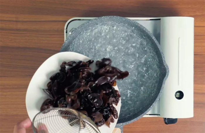 قارا قېرىنقولاقنى قاچىغا سېلىپ، سۇ قۇيۇپ 20مىنۇت چىلاپ قويىمىز؛