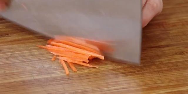 سەۋزىنى يۇيۇپ قەلەمچە شەكلىدە توغرايمىز.