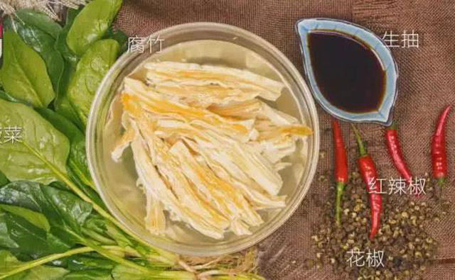 پالەك 200گىرام، دۇفۇ قېقى( تاسما شەكىللىك) 100گىرام، كاۋاۋىچىن، كىچىك ئۇچلۇق قىزىلمۇچ