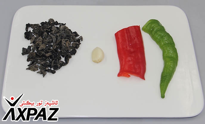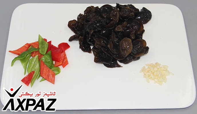 ئاندىن قاراقېرىن قۇلاقنى پاكىز ئادالاپ مۇۋاپىق تىتىپ قايناق سۇدىن .ئوتكۇزۇپ سۇغۇق سۇدا يەنە پاكىز يۇيۇپ ئايرىم قاچىغا ئىلىپ تەييارلاپ قۇيىمىز. كۆك-قىزىلمۇچلارنى ياپراقچە توغرىۋالىمىز