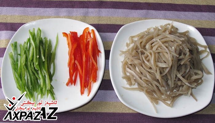 تەييارلاش ئۇسۇلى :پىشۇرۇلغان قېرىننى ئىنچىكە قەلەمچە قىلىپ توغراپ قايناق سۇدىن بىر قېتىم ئوتكۇزۋپ سوغاق سۇدا چايقاپ سۇيىنى پاكىز سېرقىتىپ بىر قاچىغا ئېلىپ قۇيىمىز . كۆك-قىزىلمۇچلارنى ئادالاپ پاكىز يۇيۇپ ئىنچىكە قەلەمچە قىلىپ توغرىۋالىمىز.
