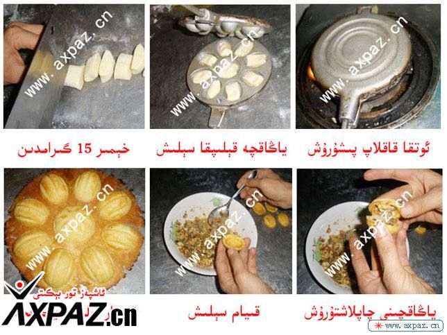 8. گاز ئوچاقنىڭ ئوتىنى توۋەن ئىچىپ.ئىككى تەرپىنى تەكشى قاقلاپ پۇشۇرىمىز