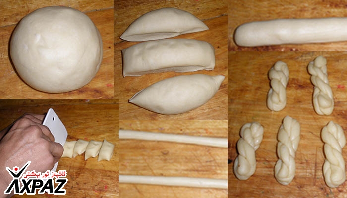 5.ئىشىپ تەييارلاپ بولغان ئەشمە قۇيماقنى لىسقا تەكشى قويۇپ تىززىپ .كۆپتۈرۈش ماشىنىسىغا سىلىپ كۆپتۈرىمىز