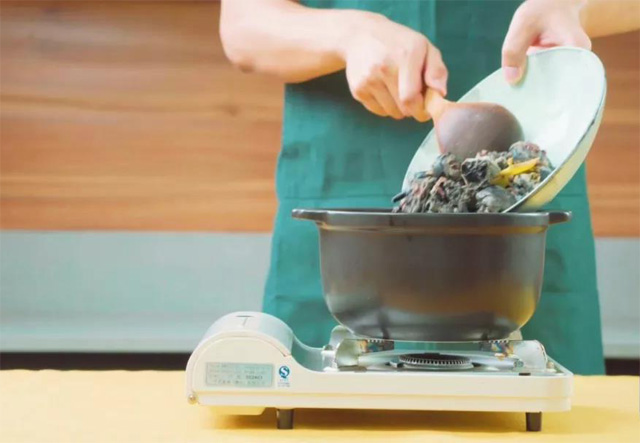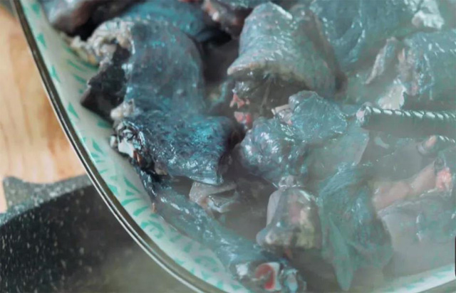 بىر مىنۇت قايناتقاندىن كىيىن، موزىلىرىنى قايرىۋىتىپ قارا توخۇ گۆشىنى سۈزىۋىلىپ ئىشلىتىش ئۈچۈن قويۇپ قويىمىز.