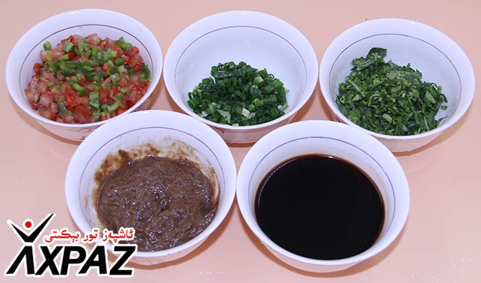 تەييارلاش ئۇسۇلى:گوشلەرنى ياپراقچە قىلىپ توغرىۋالىمىز ،كوكتاتلارنى پاكىز يۇيۇپ توغرىۋالىمىز